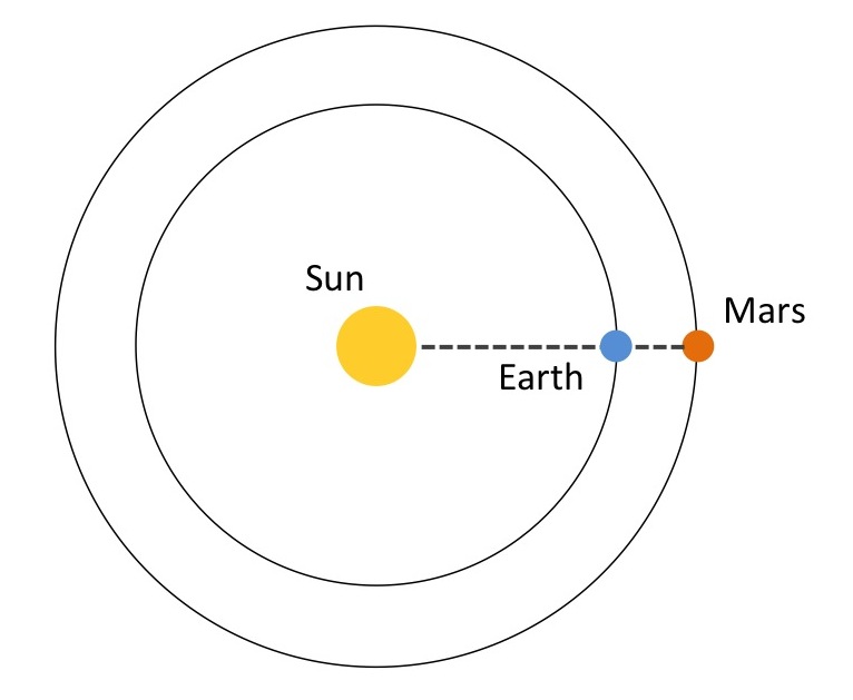 April 8: Mars at opposition. Opposition is when a planet is on the opposite side of the Earth from the Sun (see below). It’s the best time to view a planet through a telescope.